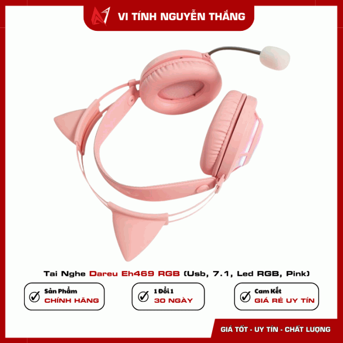 Dareu EH469 RGB Pink là mẫu tai nghe gaming đáng chú ý trong phân khúc nhờ thiết kế nổi bật, âm thanh mạnh mẽ và nhiều tính năng hỗ trợ game thủ. Với driver 50mm, âm thanh vòm 7.1 cùng micro đa hướng rõ ràng, sản phẩm mang lại trải nghiệm âm thanh tốt cho cả gaming và giải trí.
