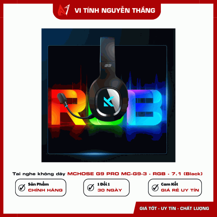 Tai nghe không dây MCHOSE G9 PRO MC-G9-3 - RGB - 7.1 (Black) (Giữ lại Box để bảo hành)