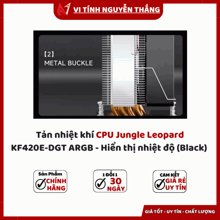 Tản nhiệt khí CPU Jungle Leopard KF420E-DGT ARGB (Black) không chỉ mang lại hiệu suất tản nhiệt vượt trội mà còn nổi bật với khả năng hiển thị nhiệt độ trực quan, giúp bạn kiểm soát hệ thống dễ dàng. Kết hợp với thiết kế ARGB hiện đại và phong cách gaming mạnh mẽ, đây chắc chắn là lựa chọn lý tưởng cho game thủ và người dùng PC muốn vừa hiệu quả vừa thẩm mỹ.
