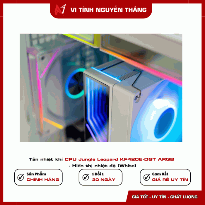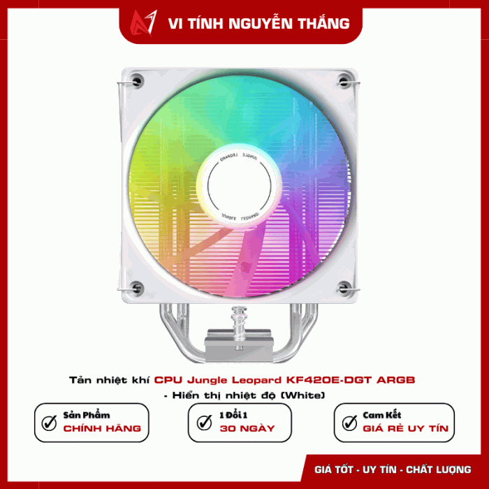 Tản nhiệt khí CPU Jungle Leopard KF420E-DGT ARGB - Hiển thị nhiệt độ (White)