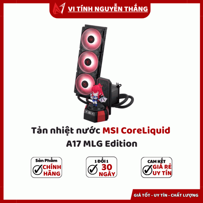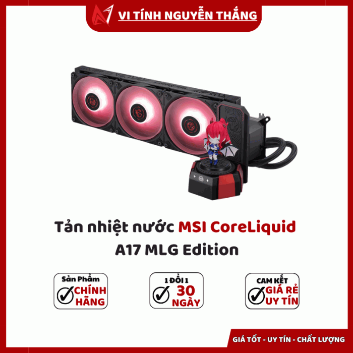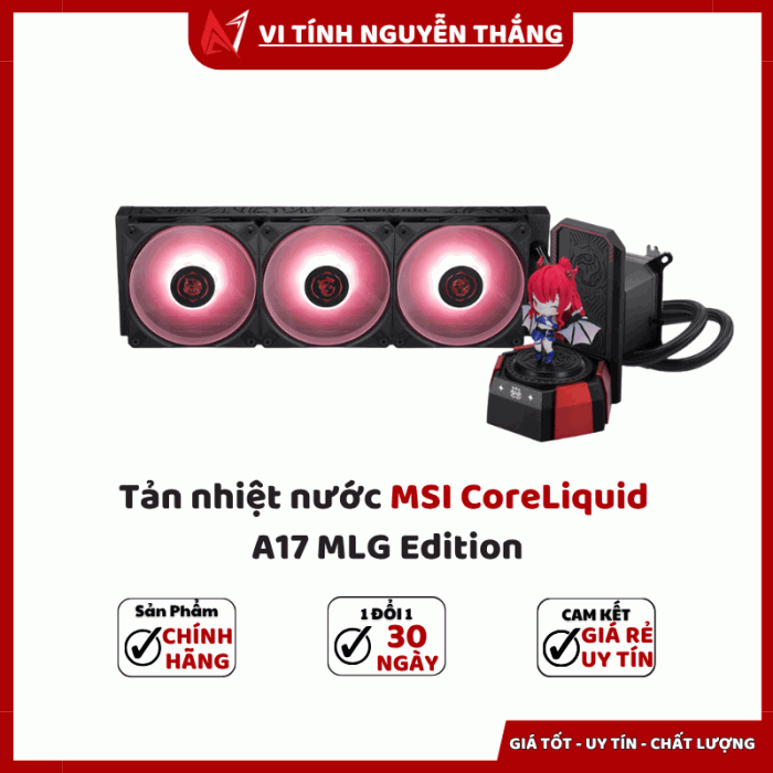 MSI CoreLiquid A17 MLG Edition là sự kết hợp hoàn hảo giữa hiệu suất – độ bền – thẩm mỹ. Với khả năng làm mát mạnh mẽ, vận hành ổn định và thiết kế gaming độc đáo, đây chính là giải pháp tản nhiệt đáng đầu tư cho những ai muốn nâng cấp PC gaming hoặc workstation cao cấp.