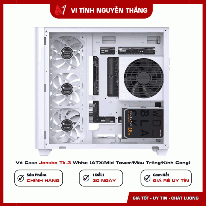Case JONSBO TK-3 White không chỉ là một chiếc vỏ máy tính – mà còn là tác phẩm công nghệ kết hợp giữa thẩm mỹ và hiệu năng. Với thiết kế đảo ngược ấn tượng, chất liệu cao cấp và khả năng tản nhiệt vượt trội, đây là lựa chọn lý tưởng cho game thủ, designer hay người dùng đam mê PC độ.